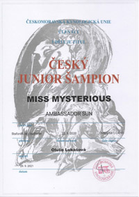 | 03. 12. 2022 | Jubilejní Praha | CAC, Jubilee Nationa. Winner, BOS | Iveta Nováková |